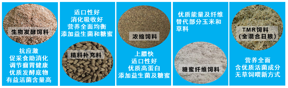 主營(yíng)產(chǎn)品:糖蜜纖維飼料、全混合日糧、生物發(fā)酵飼料、精料補(bǔ)充料、濃縮飼料等。
