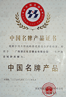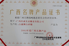 “廣西名牌產(chǎn)品“榮譽(yù)稱號(hào)證書