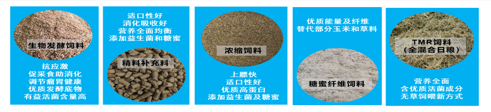公司引進先進的蒸汽爆破技術和生物發(fā)酵技術,實現(xiàn)了對糖蜜、蔗渣、蔗葉等糖業(yè)副產(chǎn)物的高值化利用,同時針對牛羊營養(yǎng)需求精準配方,生產(chǎn)生物發(fā)酵飼料、全混合日糧、全價配合飼料、精料補充料、濃縮料、預混料等產(chǎn)品;通過微生物發(fā)酵技術、菌酶協(xié)同技術,使產(chǎn)品富含菌體蛋白,不僅適口性好,誘食性強,還有效降解了毒素和抗營養(yǎng)因子,進一步提高飼料消化率、機體免疫力和抗應激能力,對動物生產(chǎn)性能及養(yǎng)殖戶經(jīng)濟效益的提升具有重要意義。