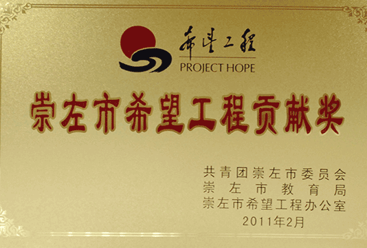 2011年榮獲崇左市希望工程貢獻(xiàn)獎