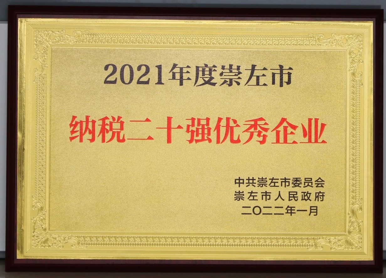 2021年度榮獲崇左市納稅二十強(qiáng)優(yōu)秀企業(yè)