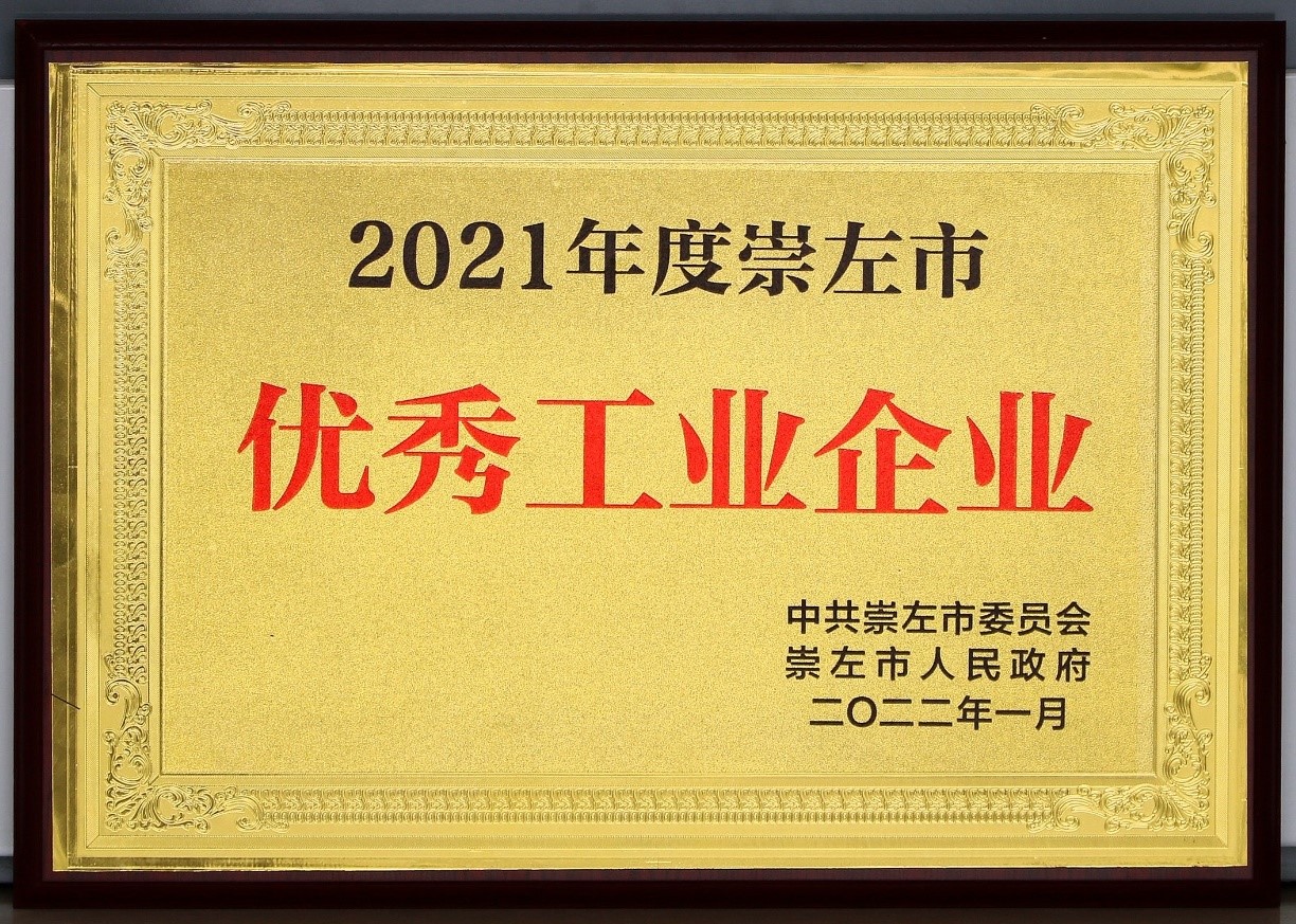 2021年度榮獲崇左市優(yōu)秀工業(yè)企業(yè)