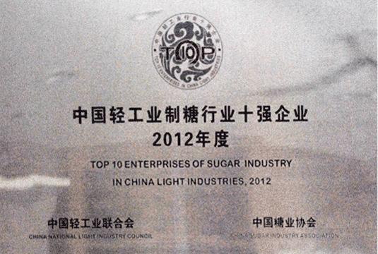 2012年度榮獲中國輕工業(yè)制糖行業(yè)十強(qiáng)企業(yè)