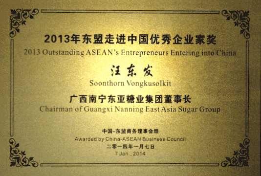 2013年榮獲東盟走進(jìn)中國十大成功企業(yè)獎