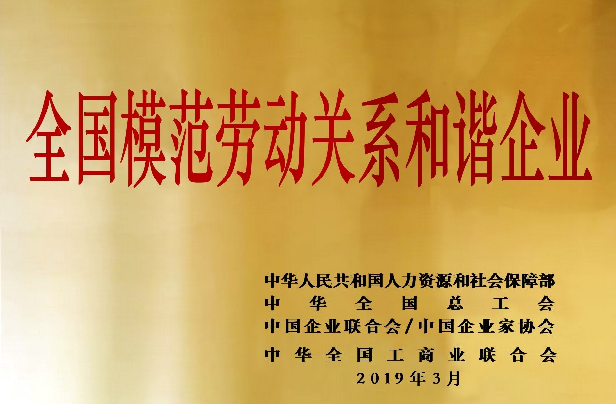 2019年榮獲全國模范勞動關(guān)系和諧企業(yè)