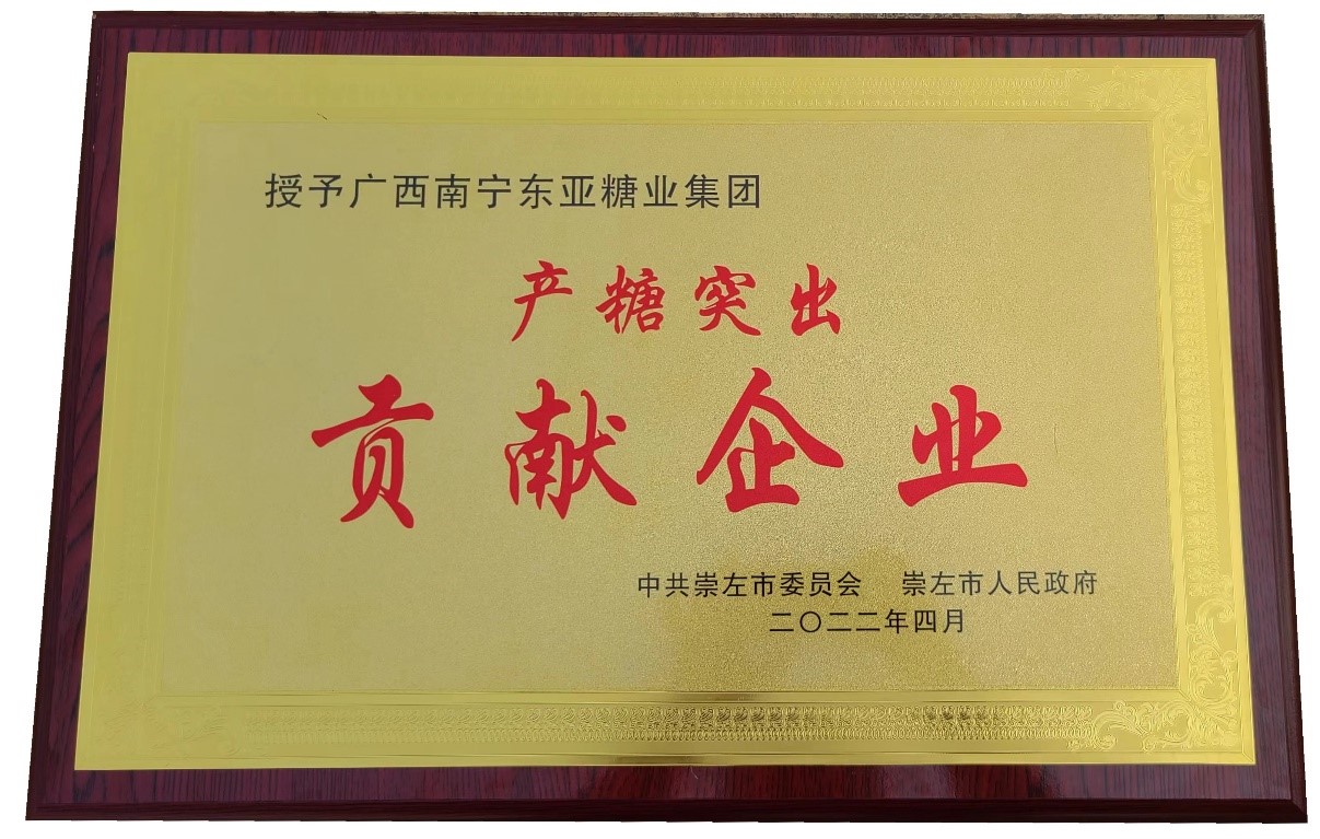 2022年榮獲崇左市產(chǎn)糖突出貢獻(xiàn)企業(yè)
